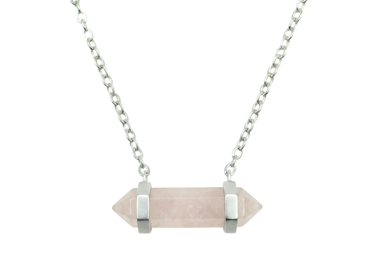 COLLAR DE PLATA .925 PUNTA CUARZO ROSA