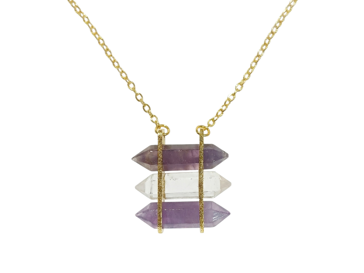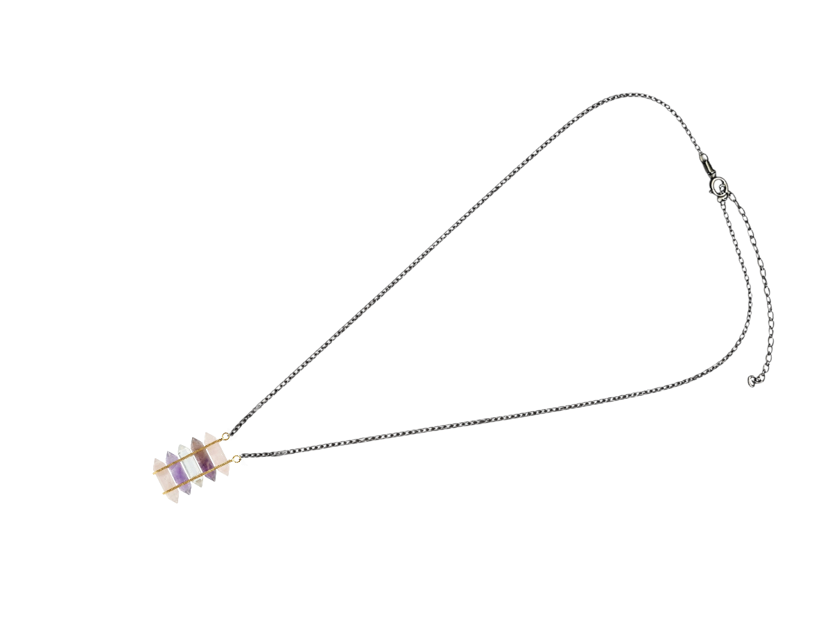 COLLAR DE PLATA .925 CENTRO PUNTAS CUARZO AMATISTA