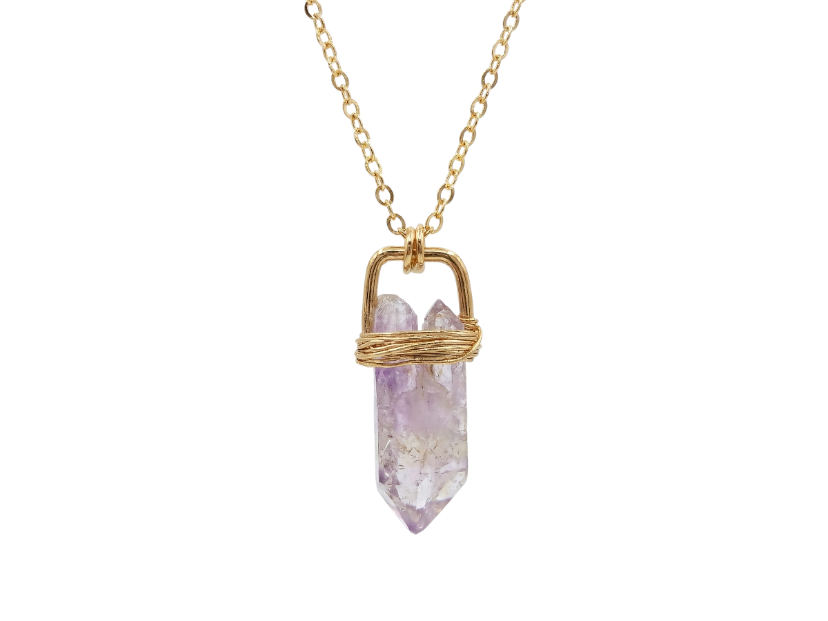 COLLAR DORADO CON CENTRO PUNTA AMATISTA