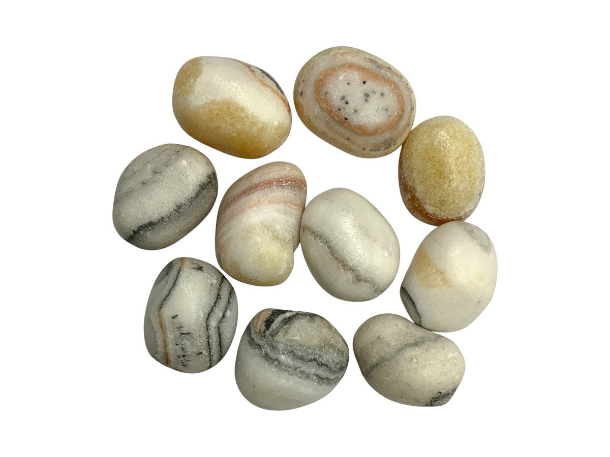 PAQUETE DE 10 PIEZAS DE TAMBORILEADO CALCITA CEBRA