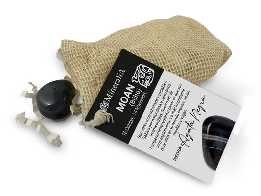 COSTALITO DEL ZODIACO MAYA "BÚHO" ÁGATA NEGRA