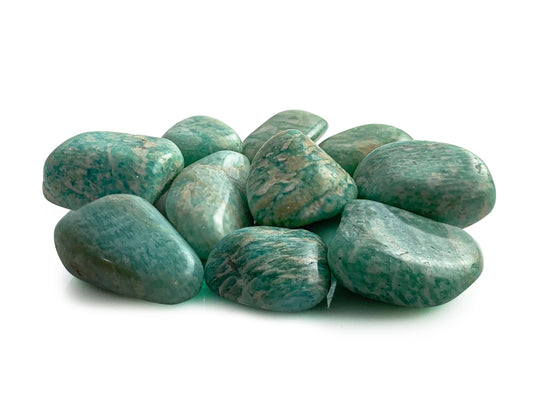 PAQUETE DE 10 PIEZAS DE TAMBORILEADO AMAZONITA.