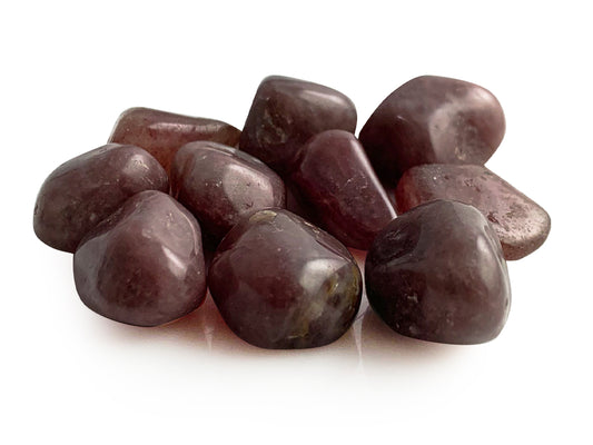 PAQUETE DE 10 PIEZAS DE TAMBORILEADO LEPIDOLITA BRILLADO.