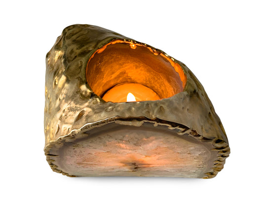 PORTAVELA DE ÁGATA CON ELECTROFORMADO DORADO.