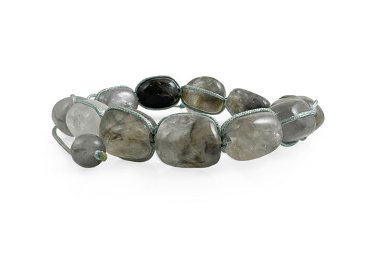 PULSERA DE CUARZO BLANCO Y CONCHA.
