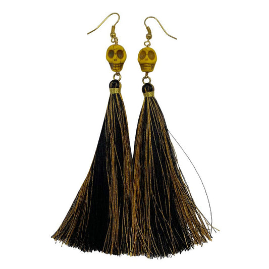 ARETES DE CRÁNEO DE HOWLITA, COLOR AMARILLO.