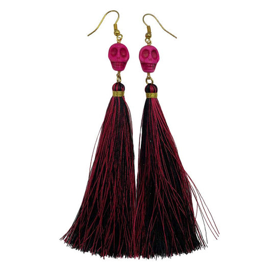 ARETES DE CRÁNEO DE HOWLITA COLOR ROJO