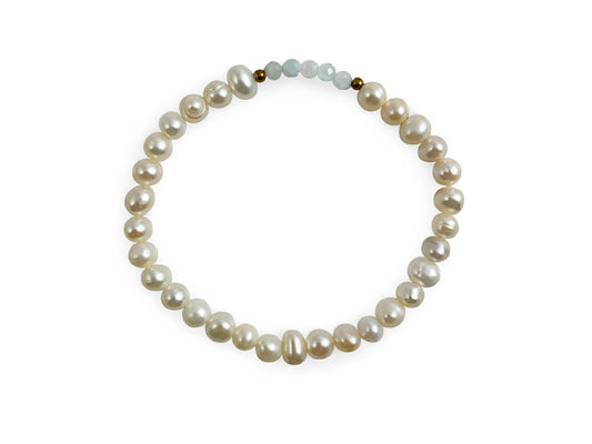 PULSERA DE PERLAS CON CENTRO DE AGUAMARINA.