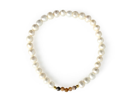 PULSERA DE PERLAS CON CENTRO DE RODOCROSITA Y PLATA