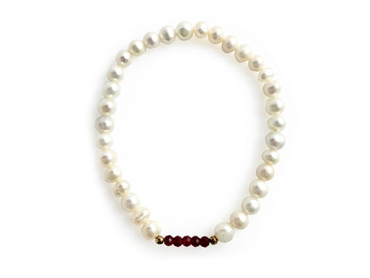 PULSERA DE PERLAS CON CENTRO DE RUBÍ Y PLATA