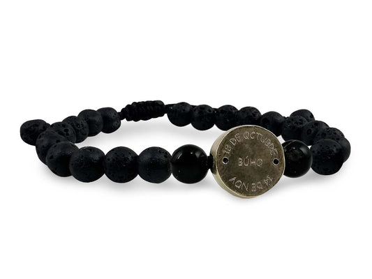 PULSERA MAYA - BÚHO - ÁGATA NEGRA.