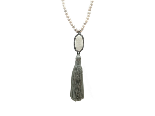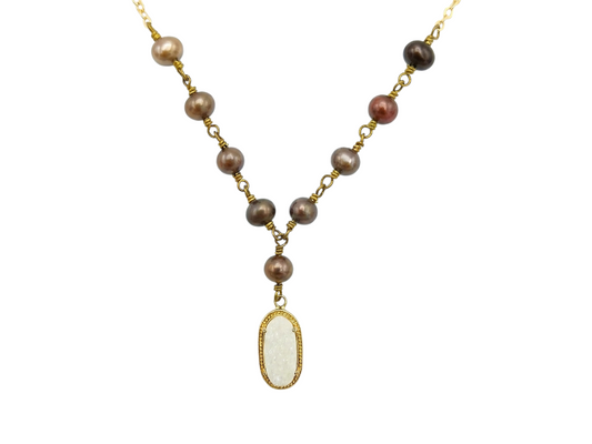 COLLAR DE PLATA .925 CENTRO CUARZO GRIS