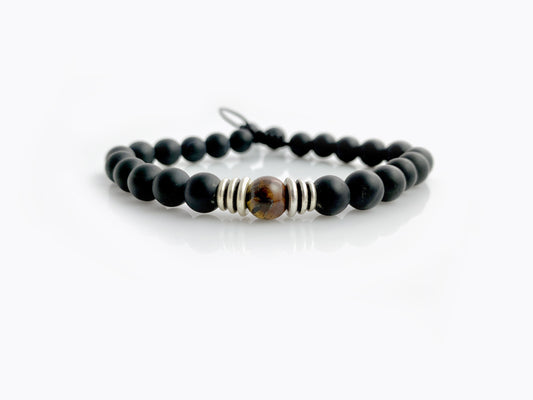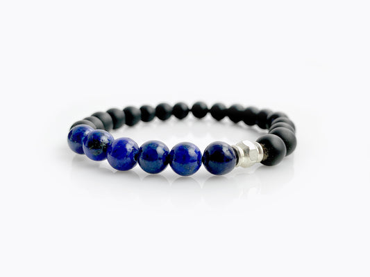 PULSERA CABALLERO ÁGATA NEGRA MATE Y LAPISLÁZULI.
