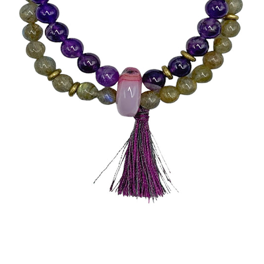 PULSERA DAMA ESFERAS DOBLE AMATISTA-LABRADORITA.