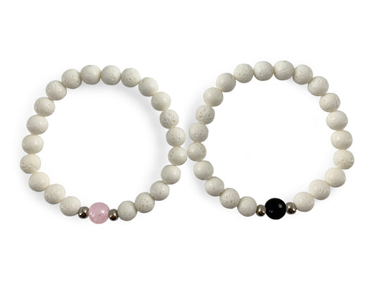 SET DE PULSERAS "TU Y YO " DE CORAL BLANCO.