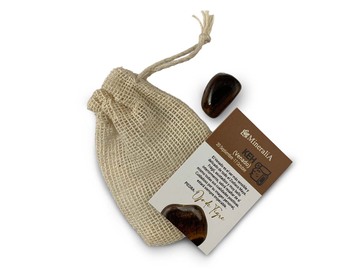 Costalito con piedra del zodiaco Maya "Venado" de Ojo de Tigre.