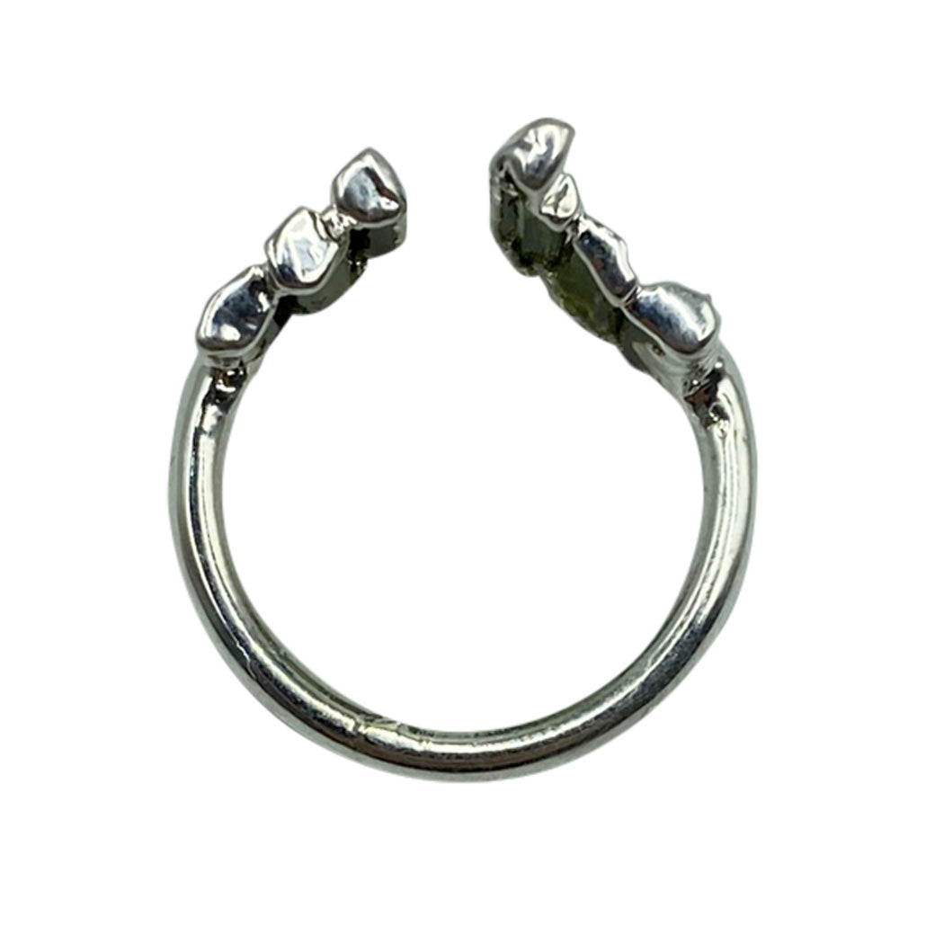 Anillo abierto con electroformado en  baño plateado, centro Turmalina Verde.