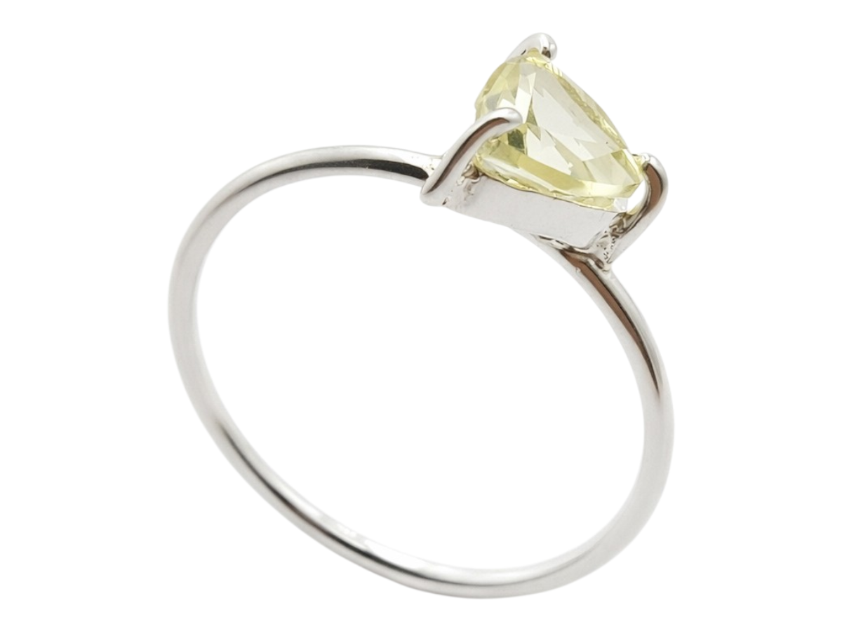 Anillo de plata .925 terminación pulida, centro de Cuarzo Limón mineral facetado, sujeto con uñas de plata.