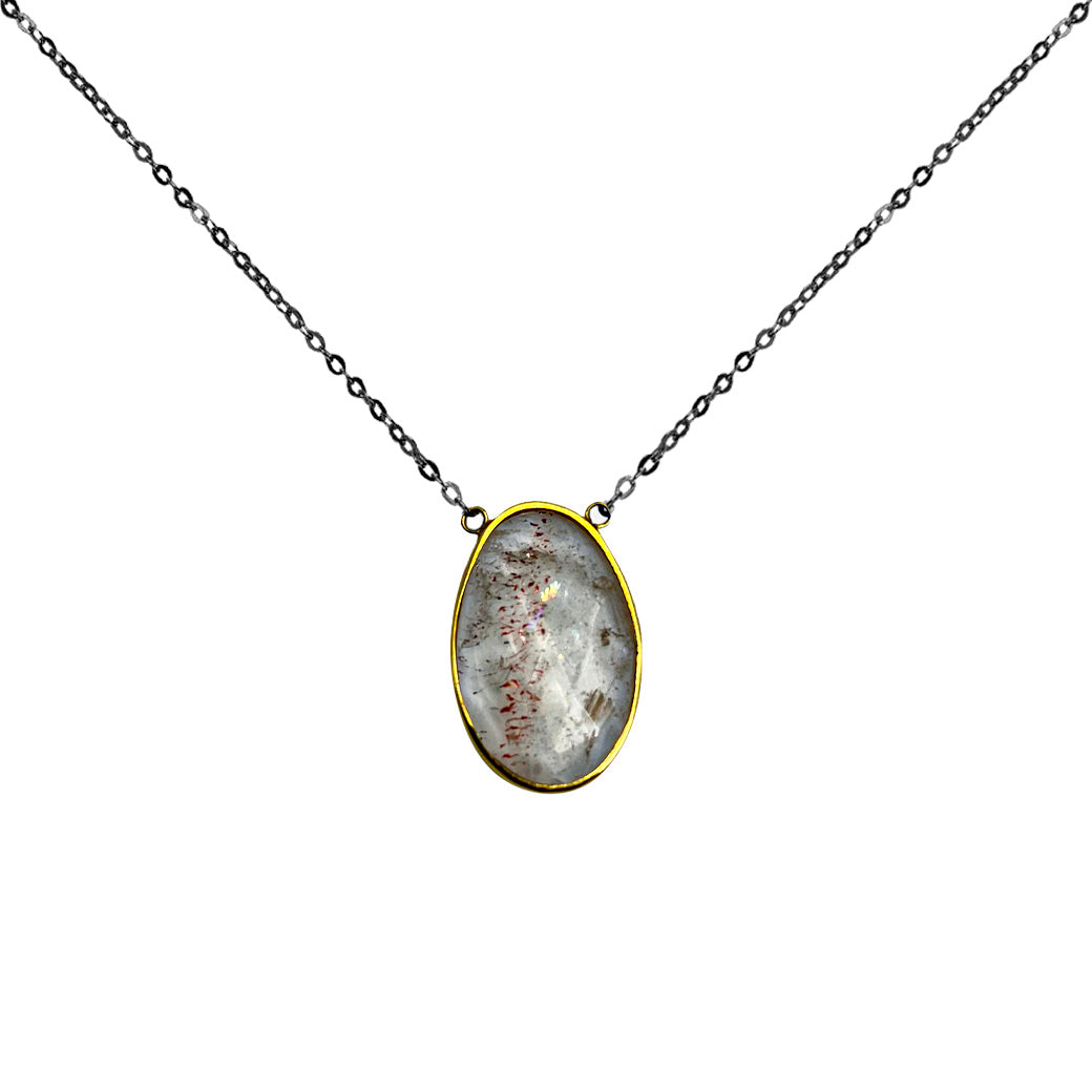 Collar corto con cadena de plata .925 en baño de rodio y centro de Lapidocrosita en bisel dorado.
