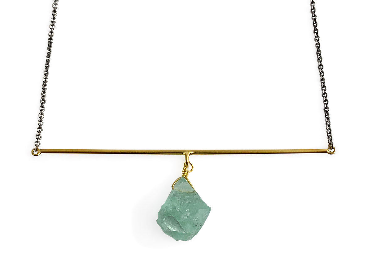Collar corto con cadena de plata .925 en baño de rodio y dije de Fluorita en barra de plata .925 con baño dorado.