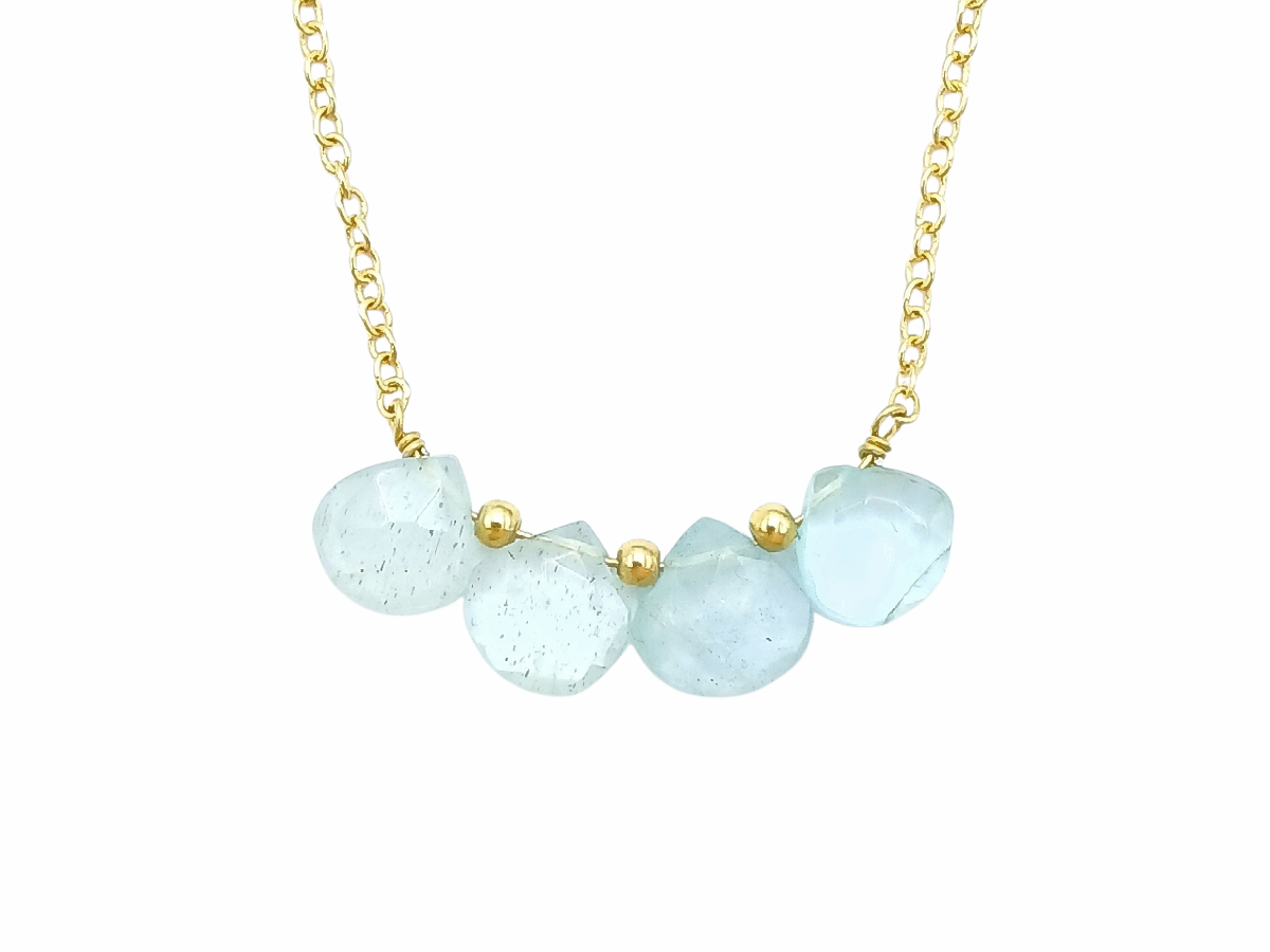 Collar corto con cadena de plata .925 en baño dorado, centro Aguamarina facetada en gota.