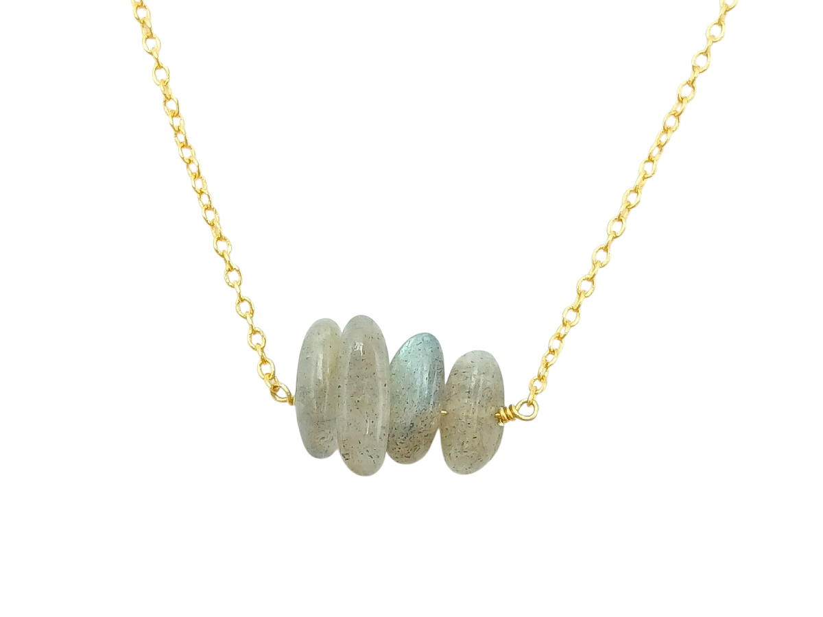 Collar corto con cadena de plata .925 en baño dorado, centro Labradorita pulida.