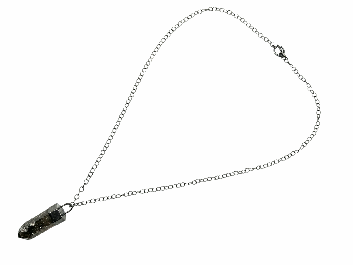 Collar largo centro punta de Cuarzo Ahumado mineral , presentación rustica.