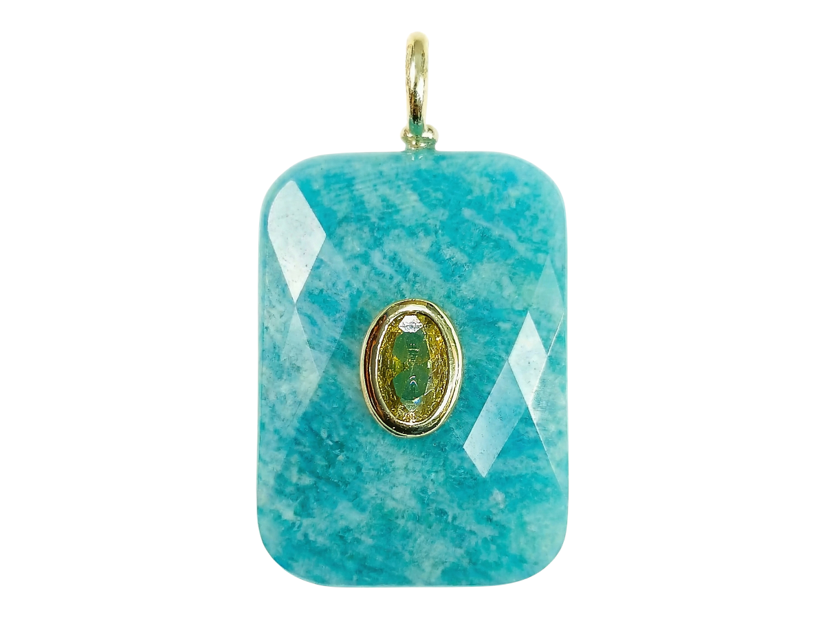 Dije facetado de Amazonita mineral ,forma rectangular con incrustación de Cuarzo Blanco o Citrino.