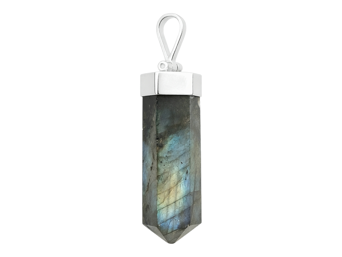 Dije de plata .925 con punta Labradorita mineral en presentación pulida.