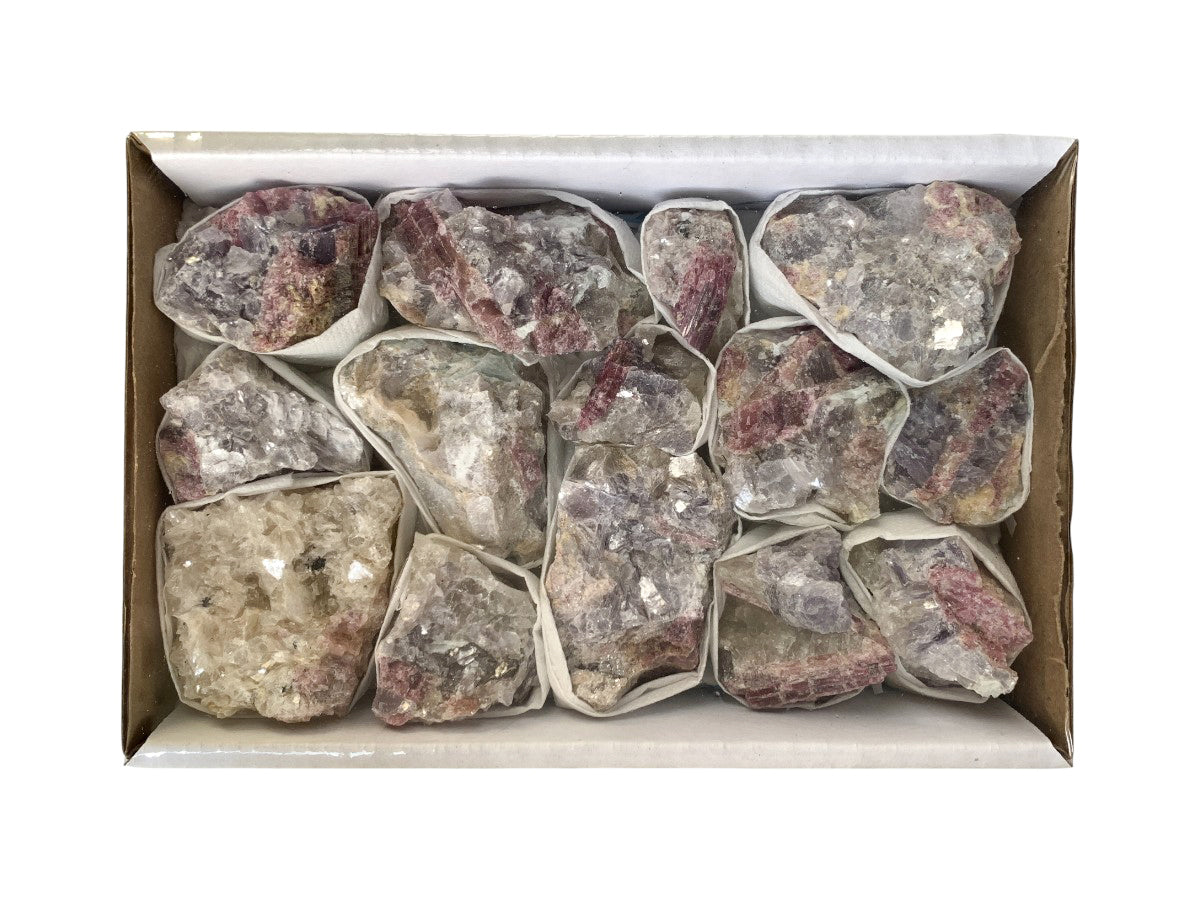 Flat triturado Turmalina Rosa mineral en presentación rústico.