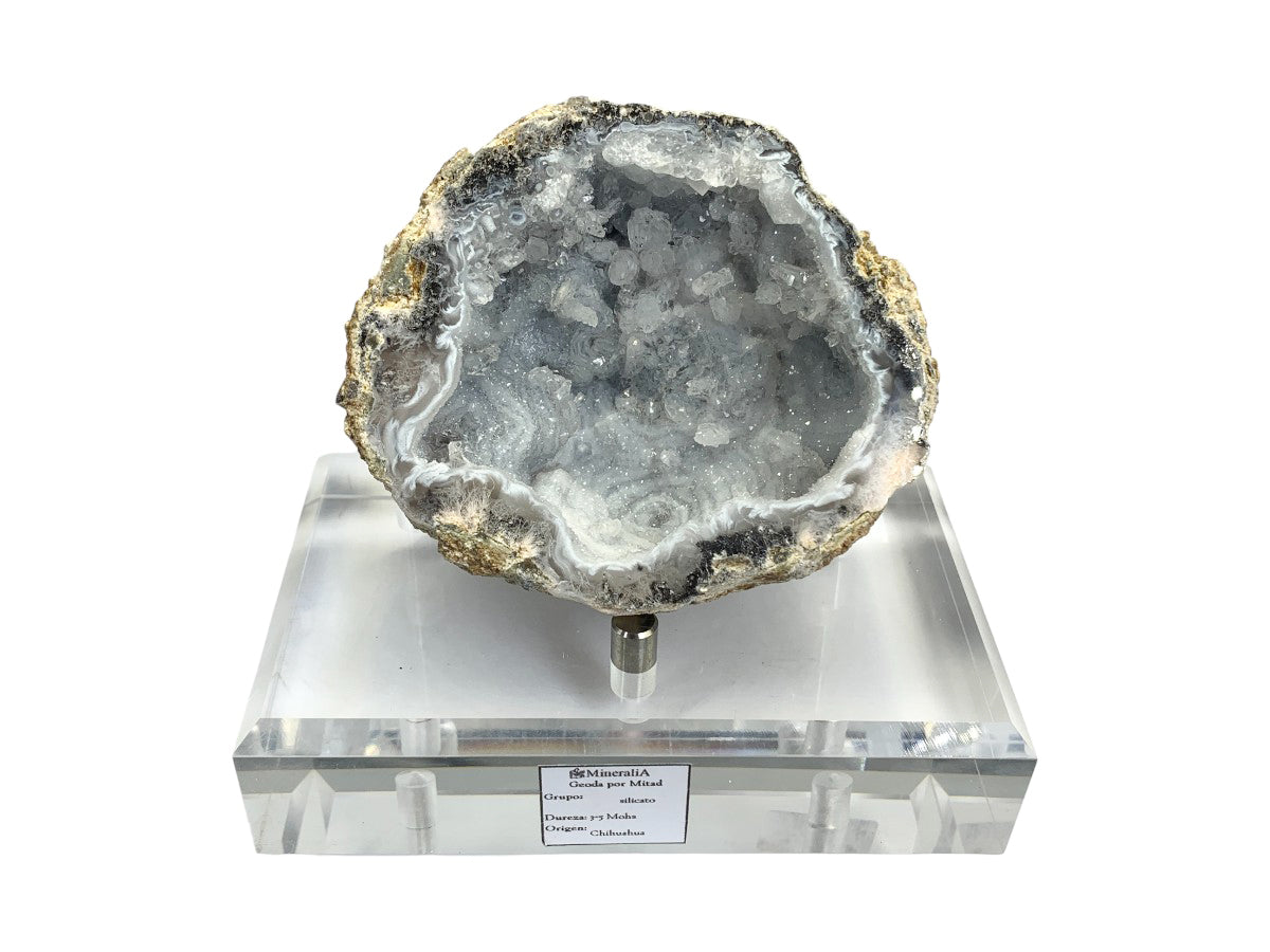 Mitad Geoda Chihuahua con base rectangular en acrílico.