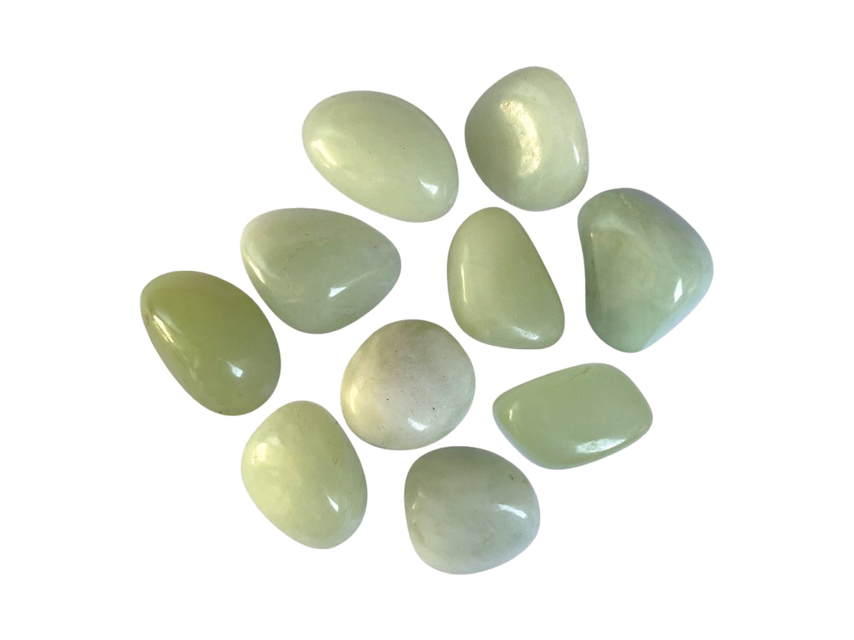 Tamborileado de Serpentina verde mineral en presentación pulido.