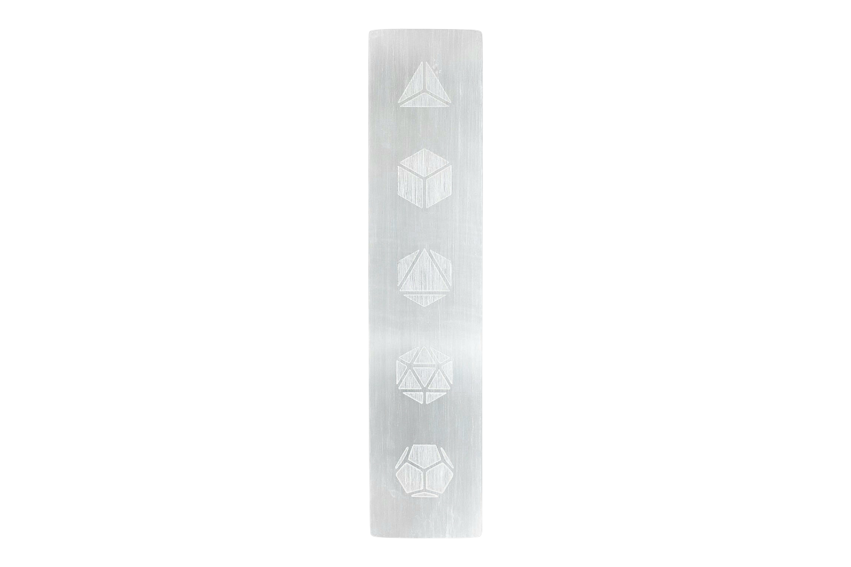 PLACA DE SELENITA CON GRABADO DE LOS 5 ELEMENTOS