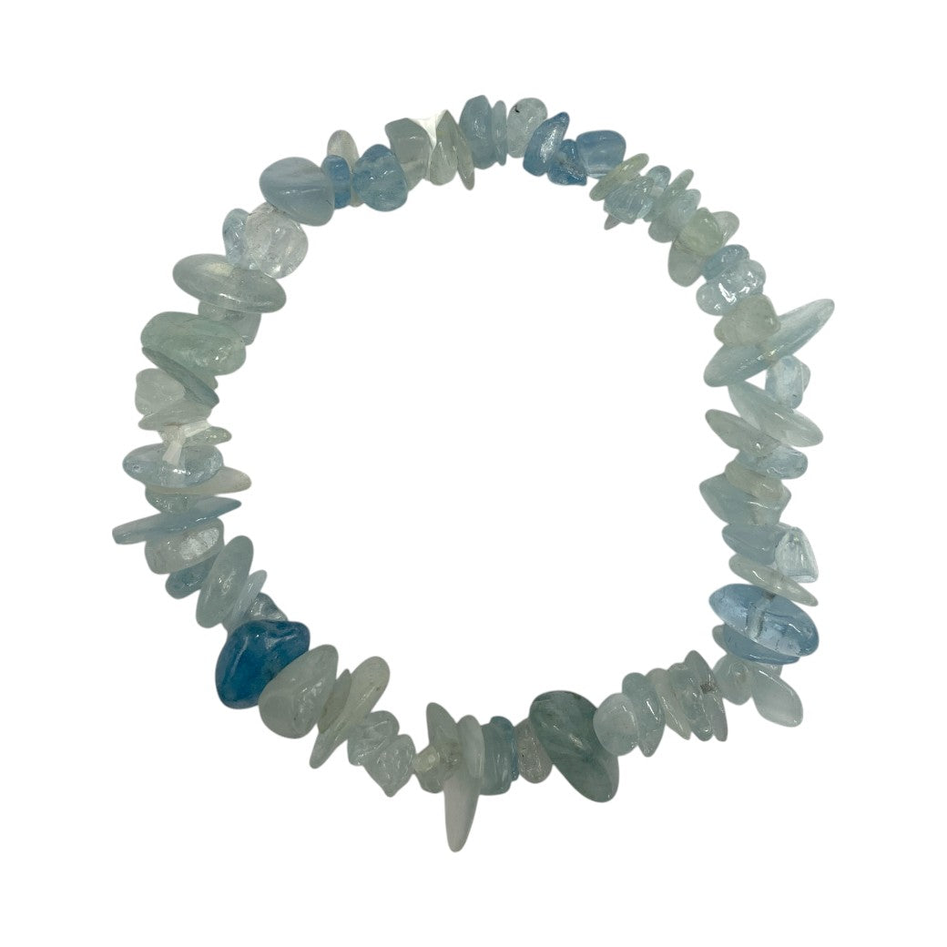 Pulsera con chips de Aguamarina mineral. Engarzada en hilo elástico. Pieza Ajustable