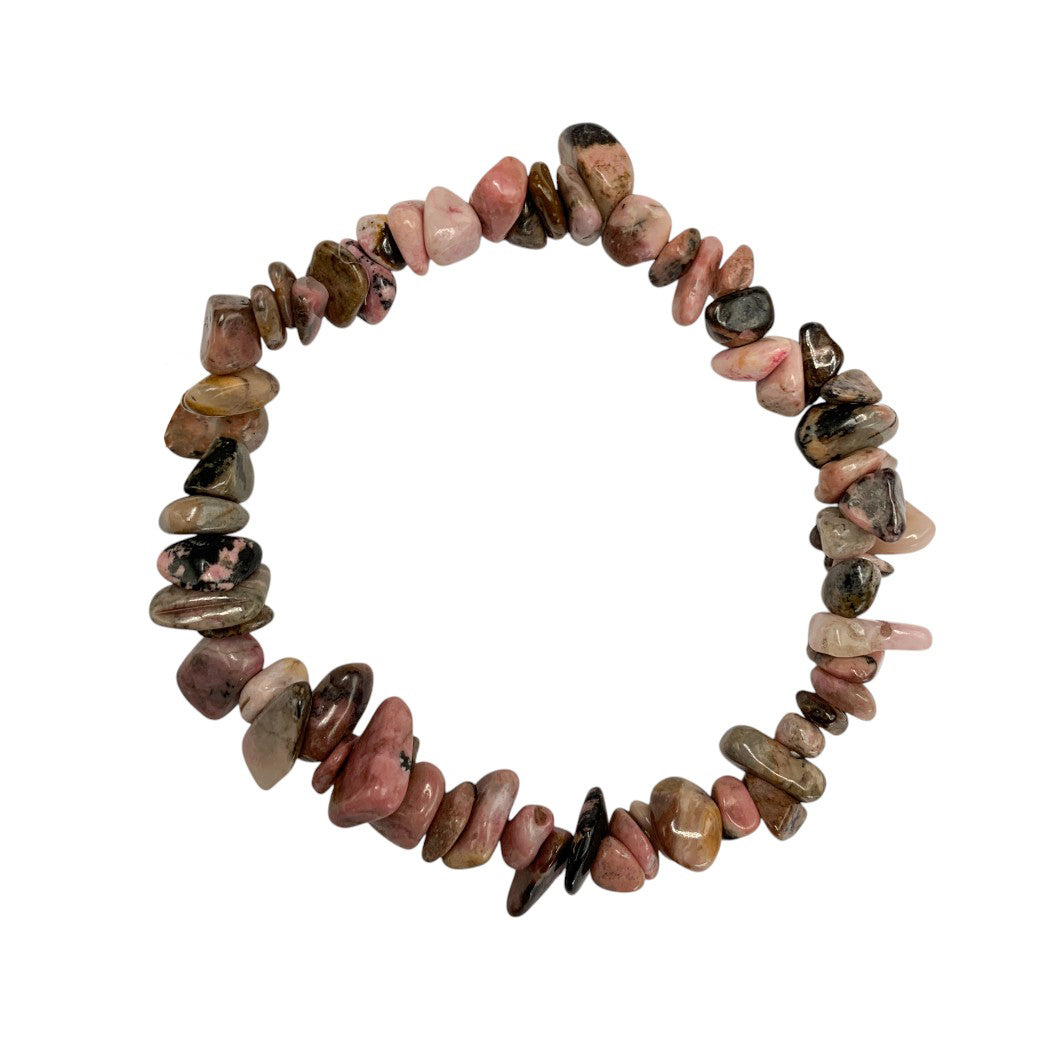 Pulsera unisex con chips de Rodonita mineral, engarzada en hilo elástico. Pieza ajustable.