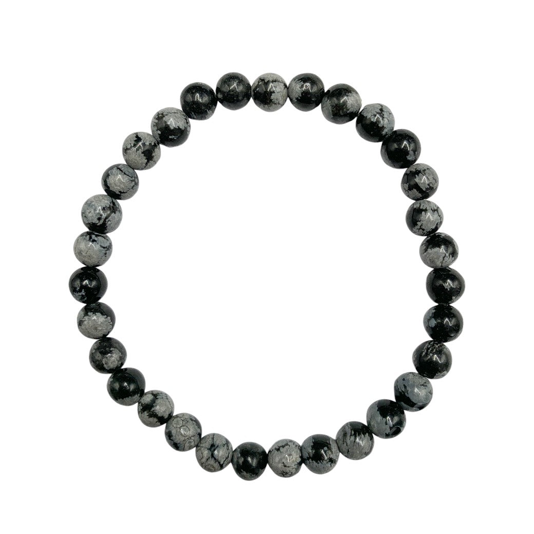 Pulsera unisex con esferas de Obsidiana Nevada mineral 6 mm. Engarzada en hilo elástico. Pieza ajustable.