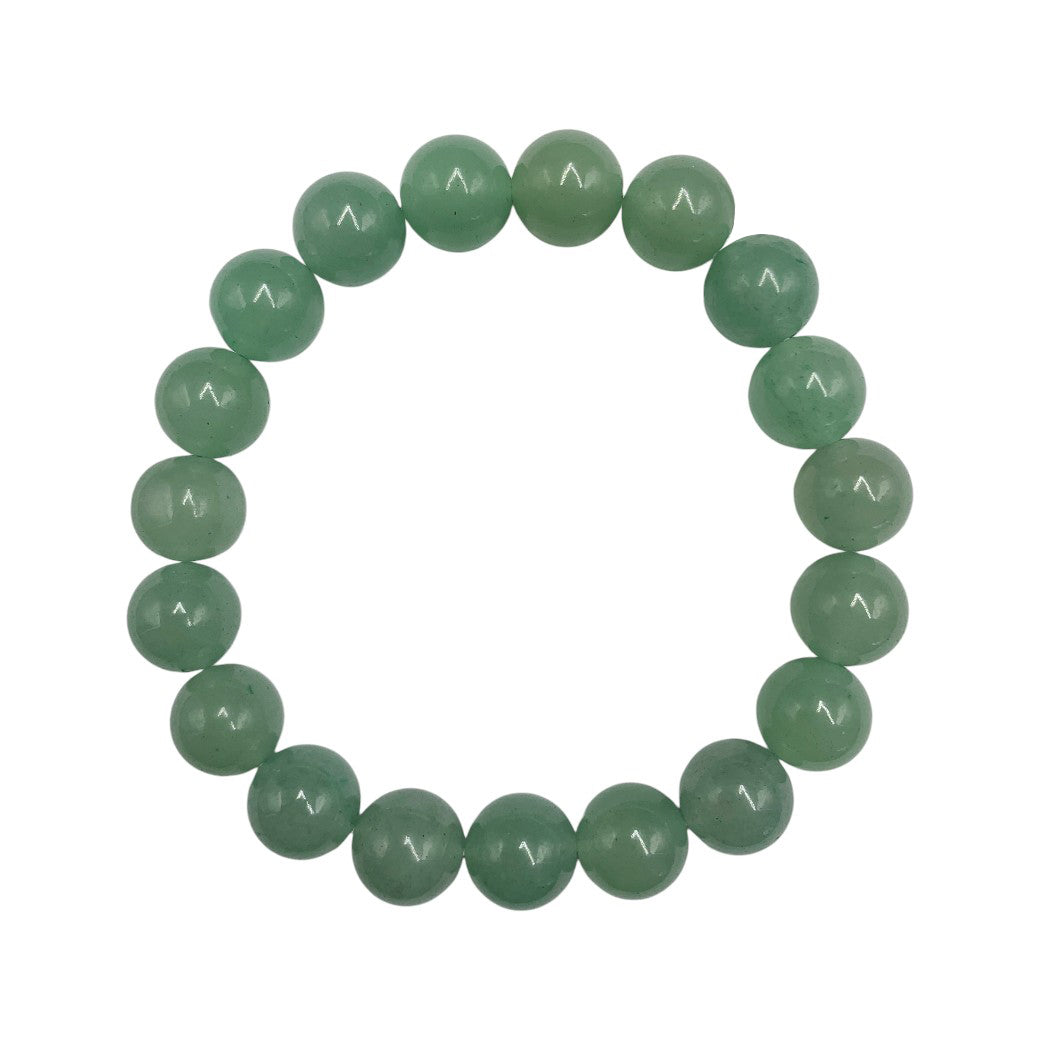Pulsera unisex con esferas de Venturina Verde mineral 10 mm, engarzada en hilo elástico. Pieza ajustable.