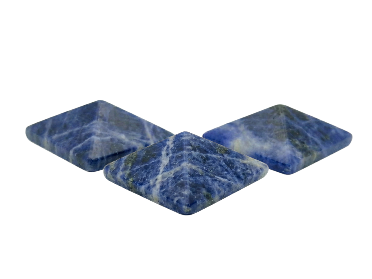 Set de tres pirámides planas Sodalita, tamaño mini, presentación pulida y brillada.